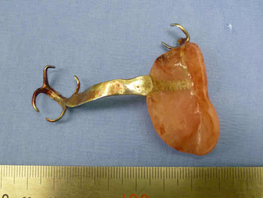 上のものに似ていますが、足の部分がかなり曲がっており、粘膜への食い込みが強く、口腔からの摘出は困難でした。